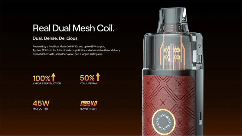 UWELL TYPHOS SE POD KIT [CRC] features a powerful 2000mAh battery and a generous 5.5 ml e-juice capacity, delivering robust vapor production and extended use. A single charge lasts up to eight days, ensuring uninterrupted vaping. With innovative CoreShield Anti-Leak Technology, enjoy up to 50% better leak protection through its dual-action system that blocks and controls e-liquid to keep your device clean. Experience longer, hassle-free sessions while saving both time and money in the long run.