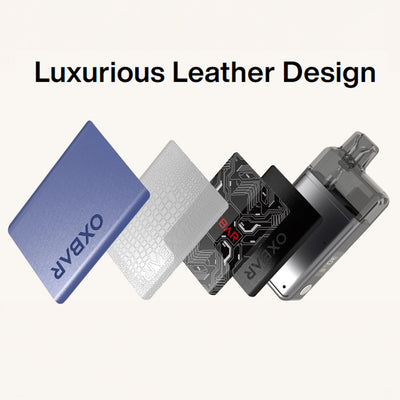 Oxbar Oxpod Elite 1500mAh Open Pod Kit is a vaping device that features a 1300mAh rechargeable battery, which can be charged via USB Type-C. The device has a leather finish and includes an 8mL refillable pod. Safety features include a child lock mechanism to prevent accidental firing, and a screen indicator displays information such as battery life and wattage. Additional features of the device include adjustable airflow and adjustable wattage, ranging from 5W to 30W. The kit utilizes a Unione Hyper Coil, and the manufacturer specifies a puff capacity of 35,000.