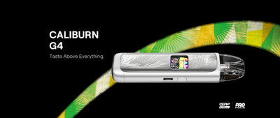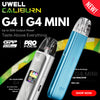 UWELL Caliburn G4 kit! Featuring dual modes customizable for every puff. This effortlessly stylish and compact device boasts a 1300mAh battery with 35W max output, providing a robust and long-lasting vape with quick charging.