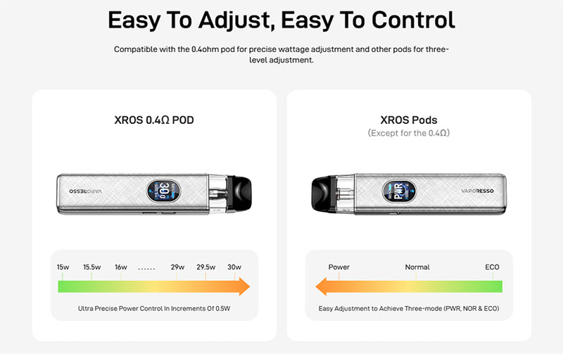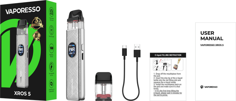 VAPORESSO XROS 5 POD KIT [CRC] is a professional and playable MTL device designed for those seeking a more professional and high-quality lifestyle. Empowered by COREX 3.0 Tech, it provides users with a more constant and stable a richer aroma reproduction, delicate flavor, and smoother vaping experience. It has a 1500mAh battery and supports 3A Super charging. Adjustable power and airflow allow for customization, and the 0.88-inch OLED display with six different colorful themes provides users with fun interactive enjoyment.
